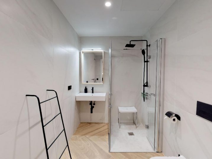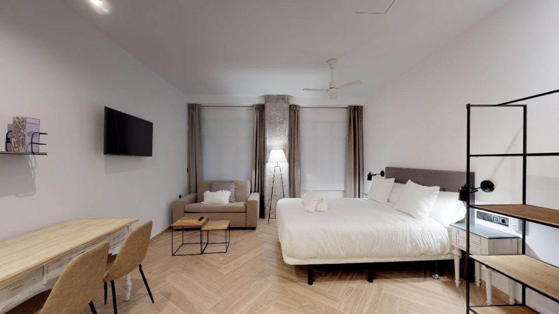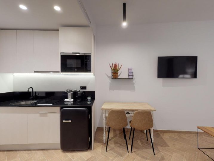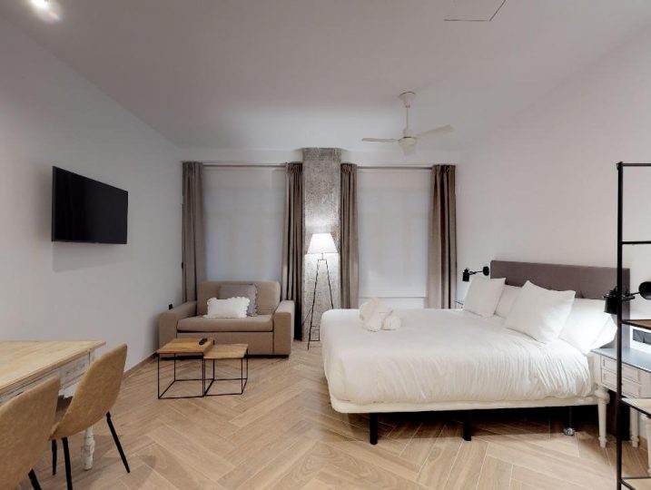 - Comodidades Adaptado para minusválidos, Aire Acondicionado, Baño privado, Calefacción, Cocina, Ducha, Enchufe cerca de la cama, Microondas, Nevera, Perchero, puertos USB para carga de móviles, Secador de pelo, Sofá cama, Toallas, TV, Utensilios de cocina, Ventilador, WiFi